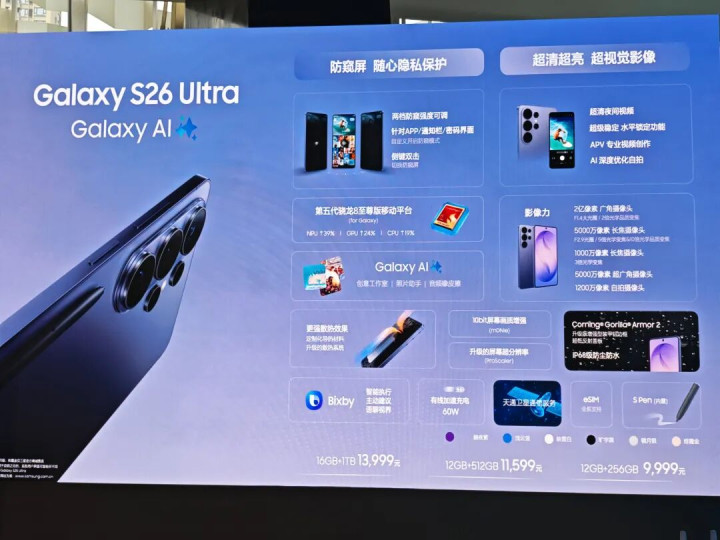 2月26日03点,三星Galaxy S26系列在三星商城、三星京东自营官方旗舰店、天猫三星官方旗舰店、抖音三星官方旗舰店等线上渠道以及线下授权三星门店正式开启预约。成功预约三星Galaxy S26系列的消费者,可有机会享受加价升杯购机福利(S26 Ultra 512GB升杯至1TB 加价1600元、S26 Ultra/S26+ 256GB升级至512GB加价800元),3月5日24点前成功预约的消费者还可享有提前发货权益。