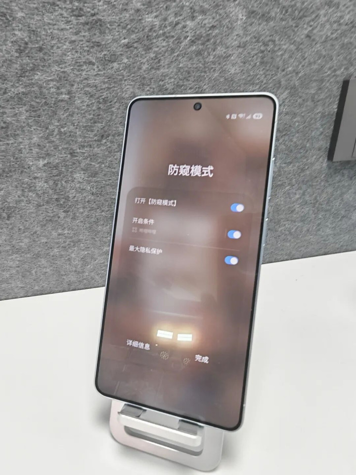用户可根据使用场景自定义防窥显示屏的防窥模式,例如在输入PIN码、密码或打开指定应用时自动开启,并可灵活调整隐私等级。“部分屏幕区域防窥”选项可智能限制通知弹窗的可视范围,“最大隐私保护”选项则会进一步弱化侧面视角的可见性。整个过程几乎不会影响到功耗和正常使用体验。