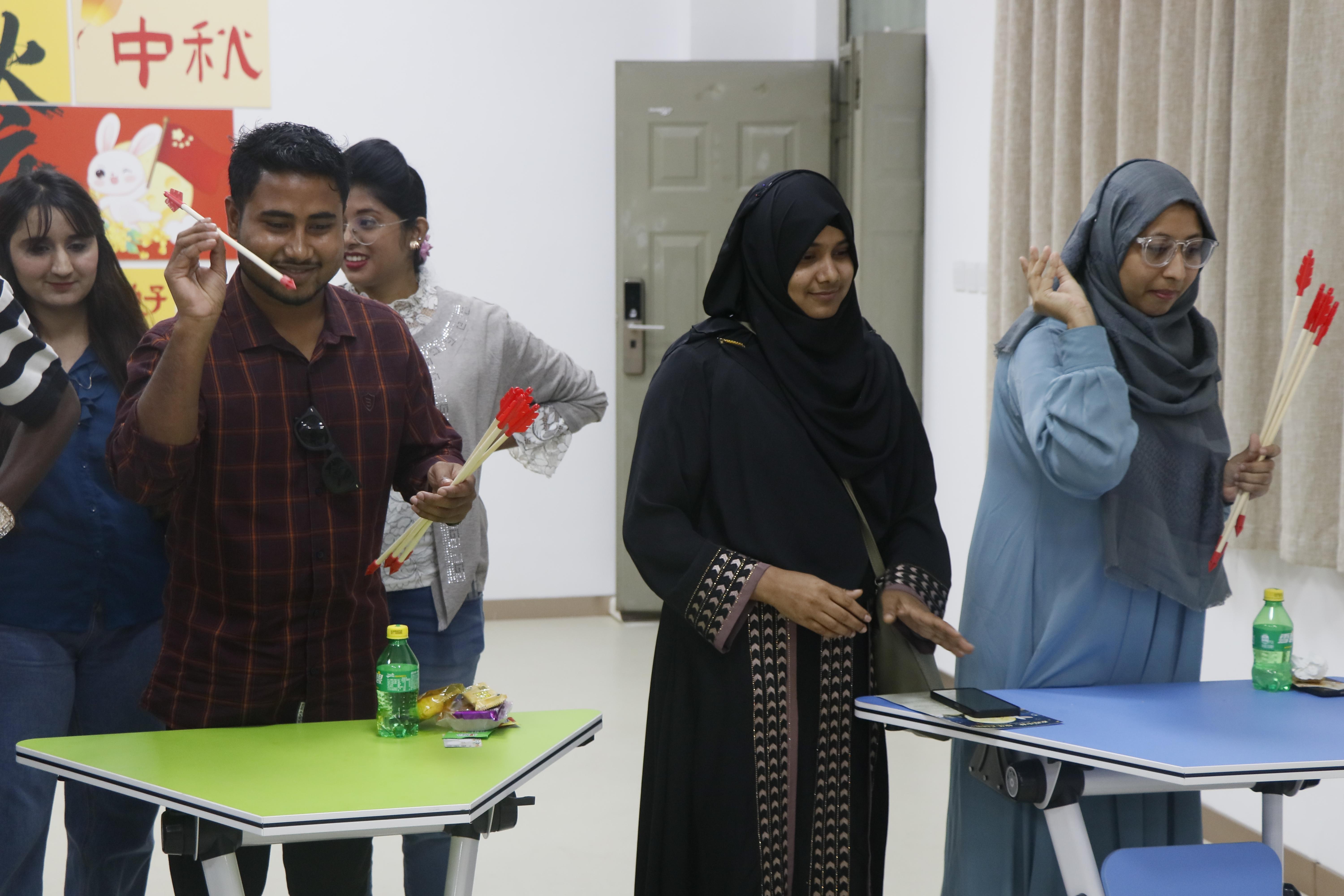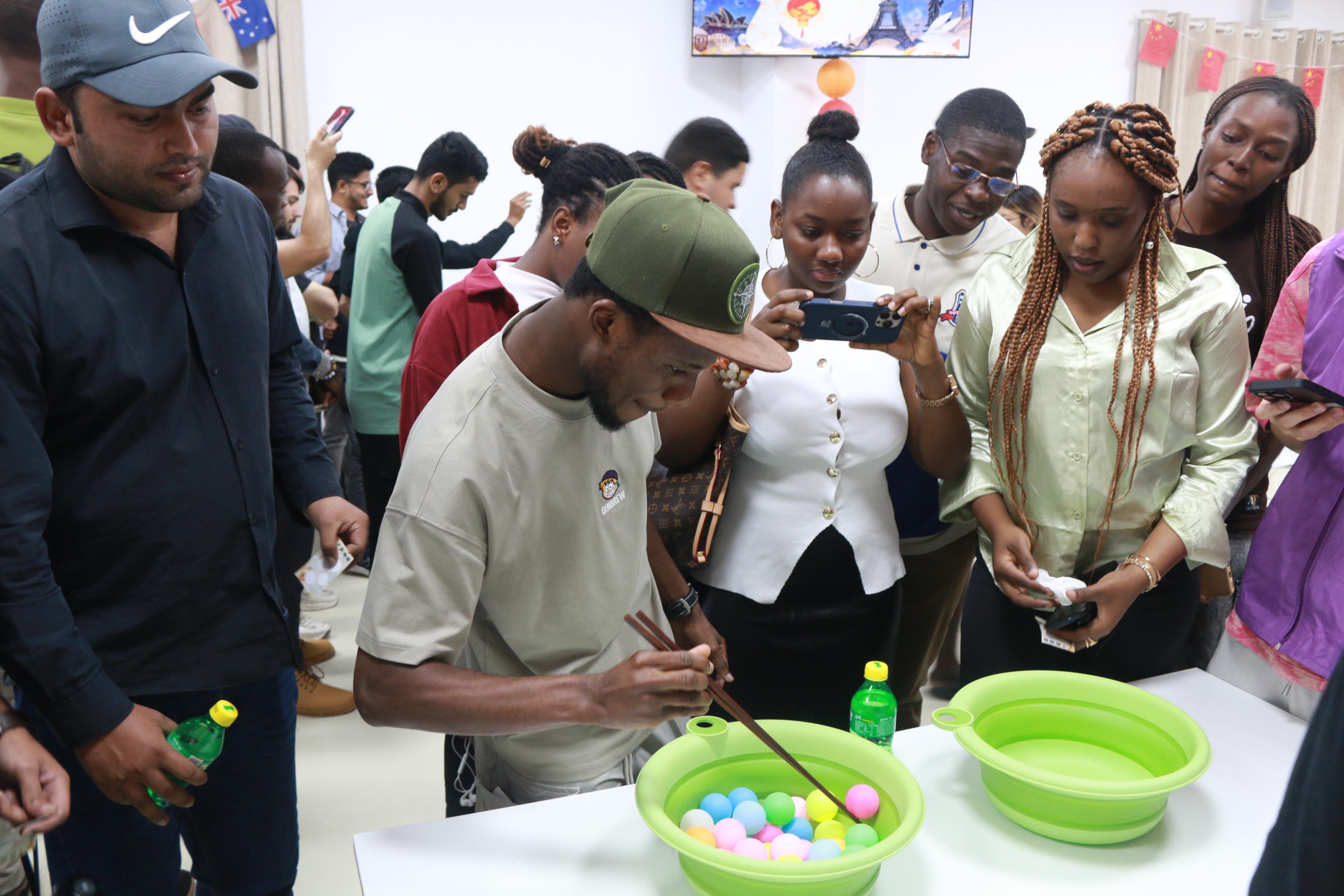 来自布基纳法索的2025级留学生艾哈迈德(AHMED)在接受采访时兴奋地表示:“这是我第一次体验中秋节,感觉太奇妙了!夹乒乓球和投壶虽然有点难,但大家一起玩得很尽兴。最让我印象深刻的是写百福图,看着那么多不同的‘福’字,我能感受到汉字的艺术和美,也更理解了中国人对幸福的期盼。”